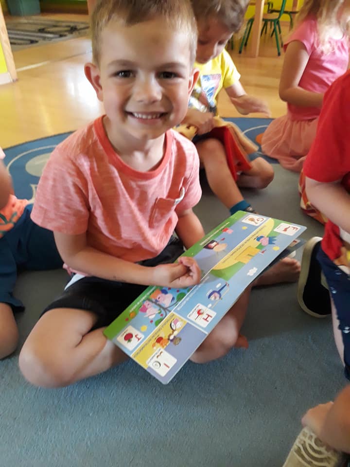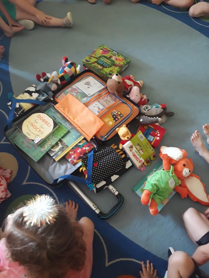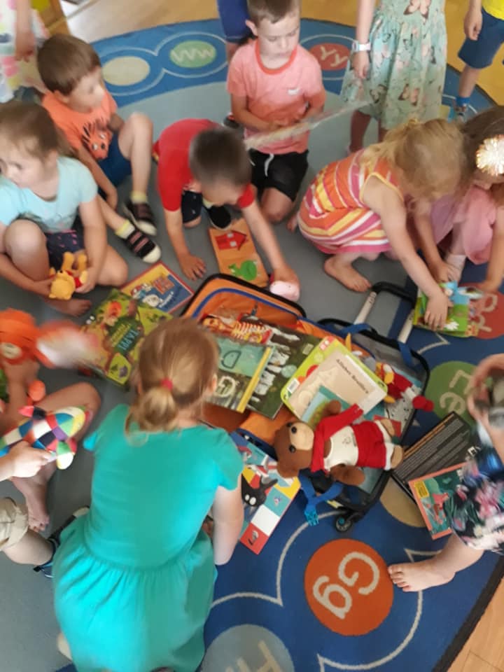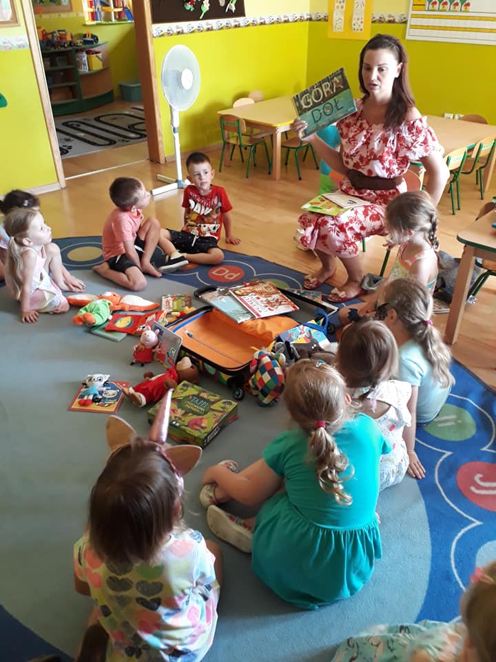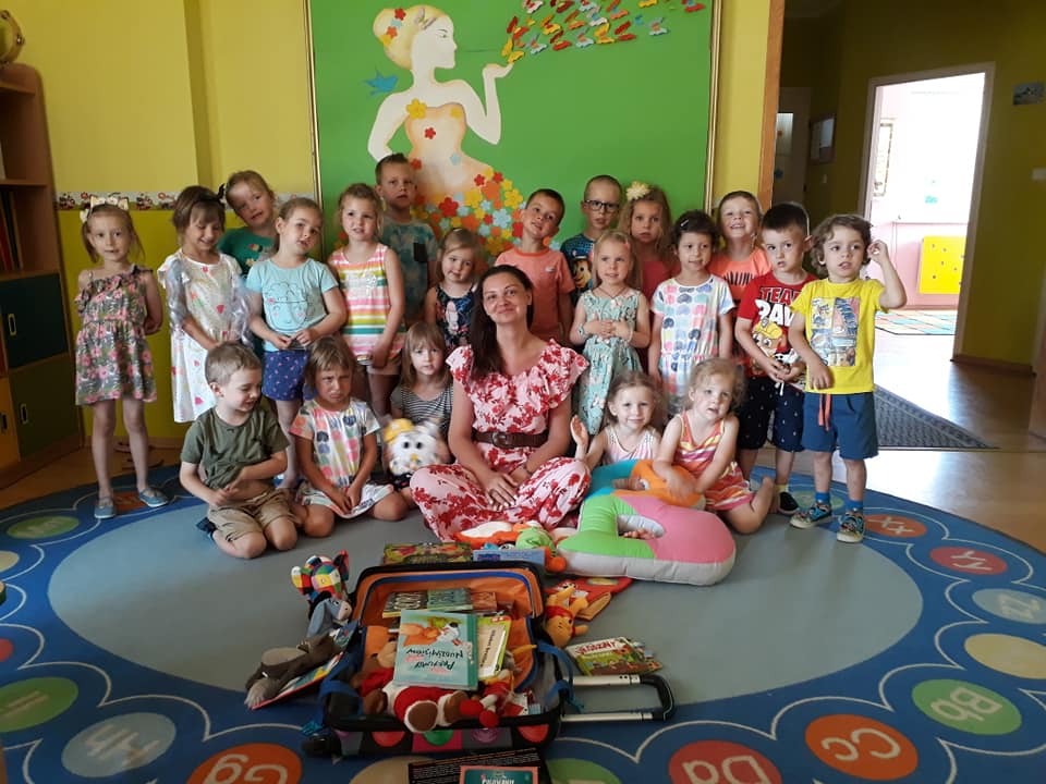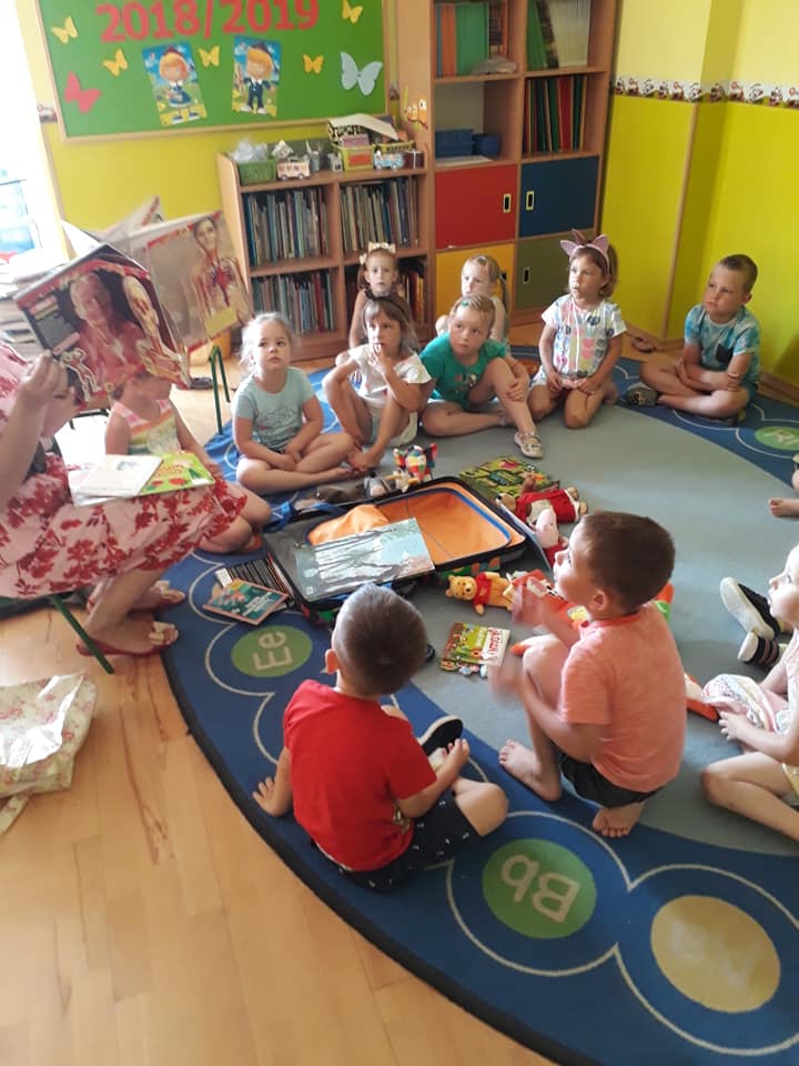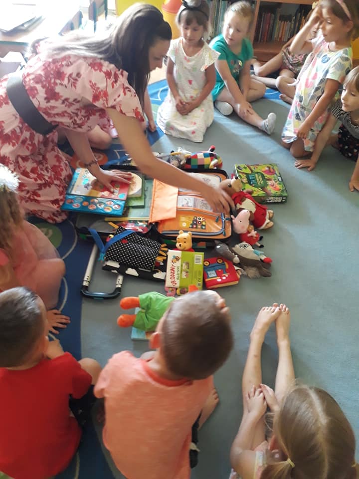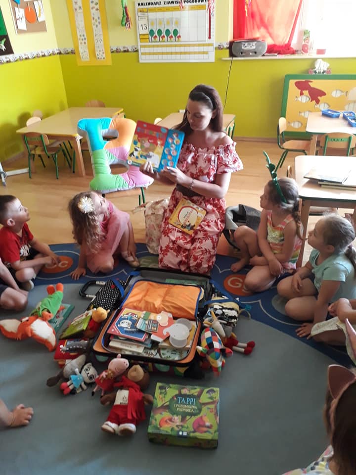 Słoneczny dzień, słoneczne przedszkole, słoneczna wizyta Bibliotekarki z bajkową walizką w Przedszkolu Słoneczny Domek.